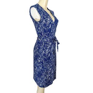 DVF Diane Von Furstenberg sleeveless blue white wrap yahzi short dress sz S