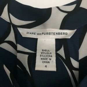 DVF Diane Von Fursterberg Edison Dress Blue Short Sleeve Silk Square Nec…
