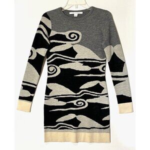 DVF Diane von Furstenberg Berlin Printed 100% Wool Sweater Mini Dress