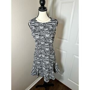 DETAILS: A lovely Diane Von Furstenberg Black and White Abstract Patterned Flounce Hem A-line Dress. I styled them with a classic set of pearls on my dress form. Comment any questions!