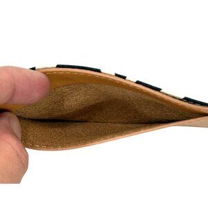 DVF Diane von Furstenberg NEW Slim Credit Card Case Brown Leather BLK/WHT Fabric