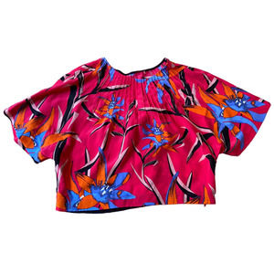 DVF Diane von Furstenberg Small Pintuck Print Silk Crop Top Floral Beachy EUC