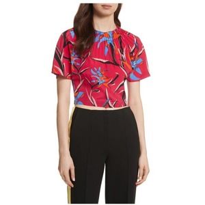 DVF Diane von Furstenberg Pintuck Print Silk Crop Top Floral Beachy