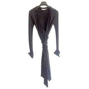 DVF Diane Von Furstenberg Vintage Iconic Jeanne Long Sleeve Wrap Dress Black 0