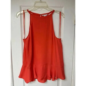 DVF | Elegant Coral Halter Top with Ruffle Hem | Summer Chic Sleeveless Blouse