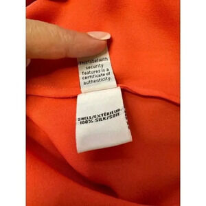 This DVF piece will Elevate your summer wardrobe with this stunning coral halter top. Featuring a sleek sleeveless design and a flattering ruffle hem, this blouse combines comfort and style. The high neckline and keyhole back detail add a touch of sophistication, perfect for both casual outings and dressier occasions. Made from a flowy fabric that drapes beautifully, this versatile piece pairs effortlessly with white pants or your favorite skirt for a polished, on-trend look.