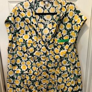 Vibrant floral sleeveless top with yellow and white flowers. Features a stylish design by DVF.
