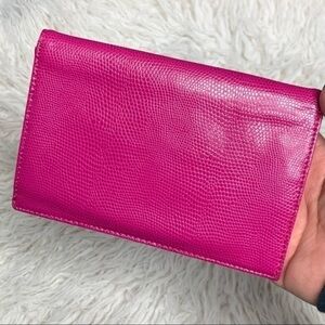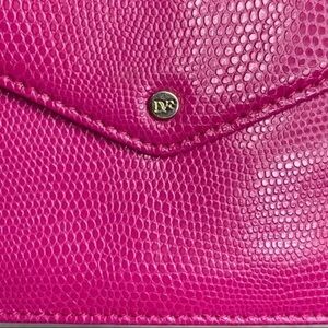 DVF Hot Pink Magenta Embossed Animal Skin Leather Travel Envelope Wallet