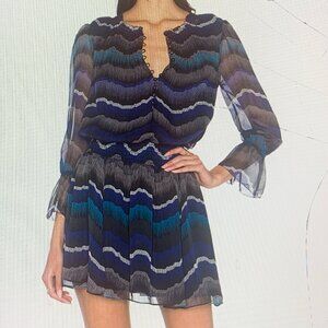 NWT Fabric: 100% silk. Lining: Sheer, black 100% poly. Dry clean only. Fully lined. Loop button front henley closure. Elasticized smock neckline and waist. Manufacturer Style No. D950201G16.