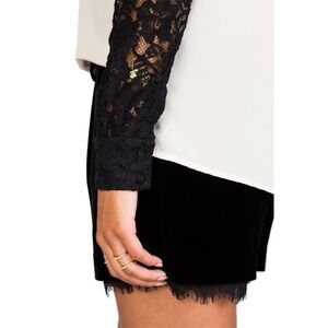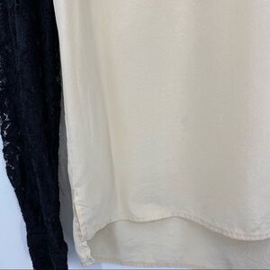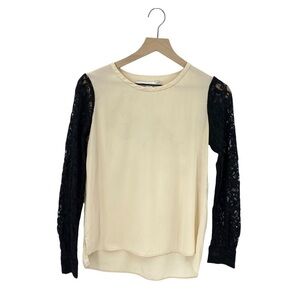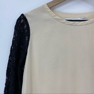 DVF Louisa Lace Sleeve Top in Sesame/Black 100% Silk Size 4