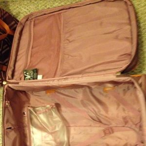 These have barely been used and this is a great travel duo set! The rolling suitcase is a 21" and the bag is a matching laptop/work bag that can hold quite a few things.