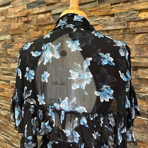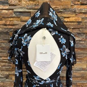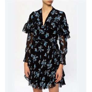 DVF Martina Long Sleeve Ruffle Wrap Dress Floral Orchid Rain Size XS