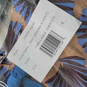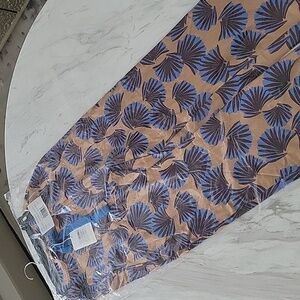 Veronica Pant in tobacco and blue large fan with jacquard design and elasticized back waist