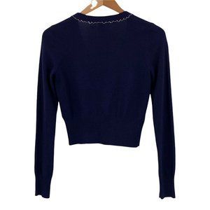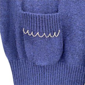 DVF Navy Blue 100% Cashmere Cardigan Chain Trim Size Small Diane Von Furstenberg