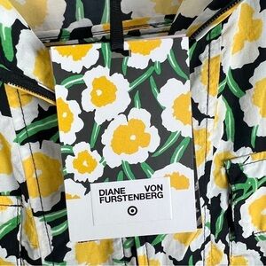 Diane von Furstenberg x Target collaboration. "This Nylon Packable Poppy Short-Sleeve Hooded Vest from Diane von Furstenberg for Target lets you bloom no matter where your day takes you. Made from lightweight nylon fabric, this short-sleeve hooded vest features allover yellow poppy pattern. The front full-length zipper and adjustable hem complete the versatile design, and it’s packable into the inside self fabric pocket." New with tags!