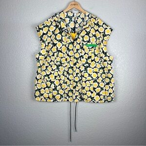 DVF Nylon Packable NWT Yellow Poppy Short-Sleeve Hooded Vest XXL - Floral, Light