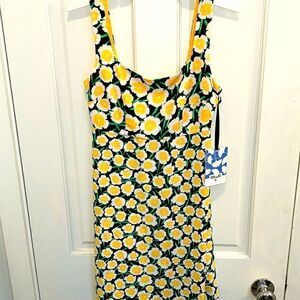 Fresh 90s look π NWT. DVF 4 Target π― Top of dress lined in yellow. Side zip. Recycled Polyester Fabric makes this a sustainable dress π machine washable. Stored and shipped sealed. Pictures taken of sizes available. Sold out limited edition of detail design and fabrics!