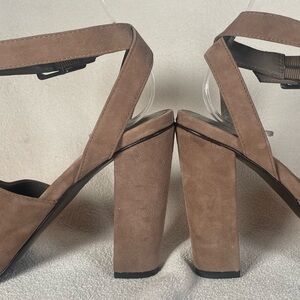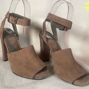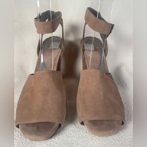 DVF Rebel Suede Platform Block Heel Sandals Diane Von Furstenberg Taupe Sz 6.5