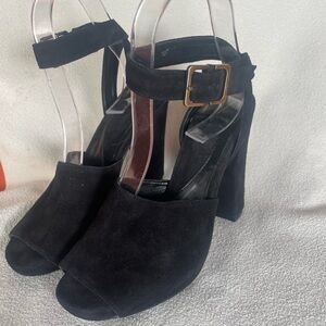 DVF Rebel Suede Platform Block Heel Sandals Diane Von Furstenberg black Sz 6.5