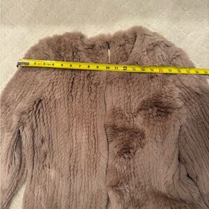 Cozy fur jacket in a blush color. Perfect for adding warmth and style. Closes with 3 hook & eye closures at front. The tag is detached on 1 side (pictured) otherwise excellent condition and barely worn.