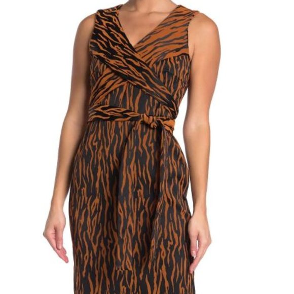 Diane von Furstenberg DVF Rogue Animal Print Wrap Bodice Midi Dress