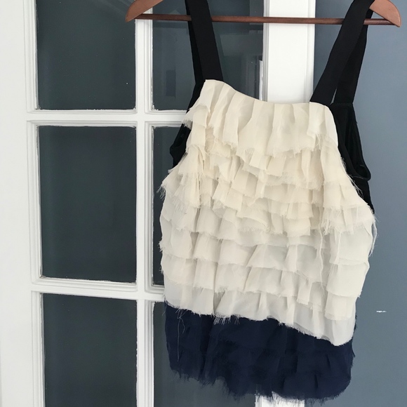 Adorable white and navy ruffle tank by Diane Von Furstenberg