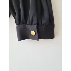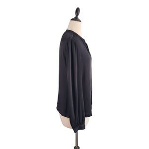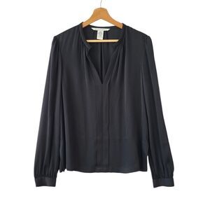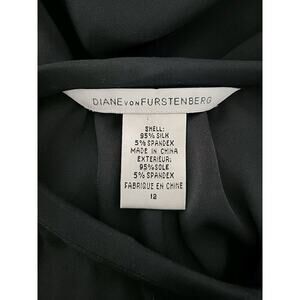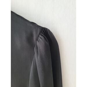DVF Silk Billow Blouse Womens 12 Black Split V-neck Minimalist Quiet Luxury Work