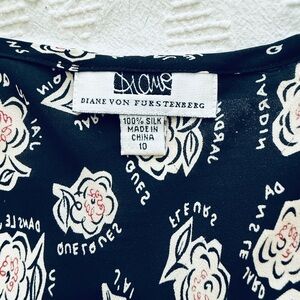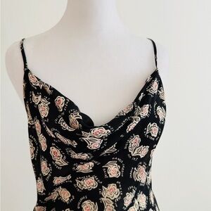 DVF Silk Slip Dress. Black w/ Floral Pattern. Women’s size 8