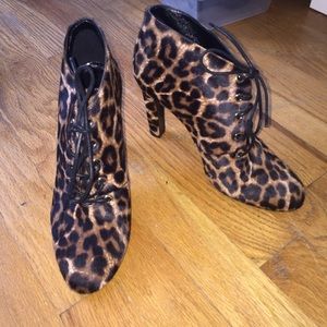 DVF Skylar Calf Hair Leopard Lace-Up Ankle Boot 7!
