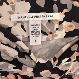 DVF Sleeveless Midi Dress Floral Pattern Neck Detail Wrap Around 100% Silk 6/M