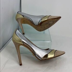 DVF Sz 8 Diane von Furstenberg Gold Silver Leather Pumps
