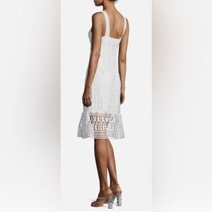 DVT Diane Von Furstenberg white lace dress with V neck and side zipper closure. Triple lined with exposed lace detailing on the bottom.