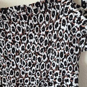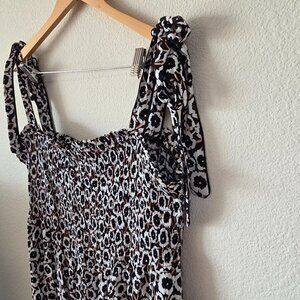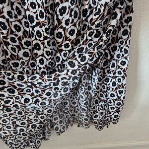 DVF Womens SZ 1X Black White Floral Smocked Maxi Dress Adjustable Tie Straps
