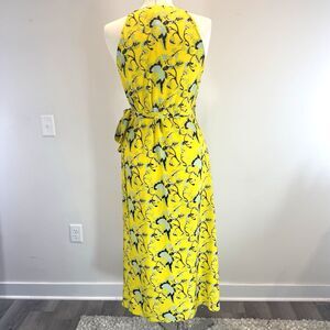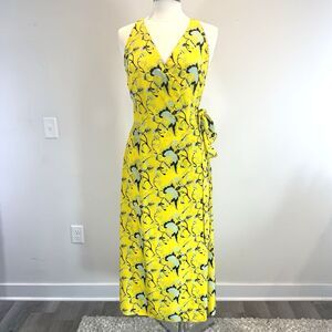 DVF Wrap Dress Maxi Silk Yellow Floral Tie Waist Size 8 READ DESCRIPTION