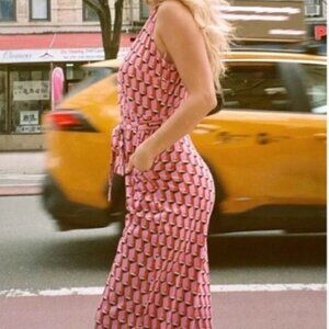 DVF for Target Collared Sleeveless Pink Modern Geo Jumpsuit
