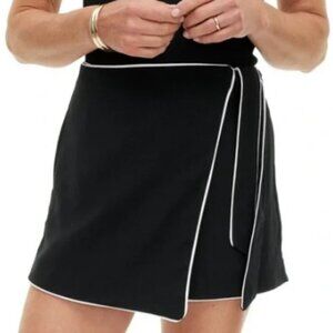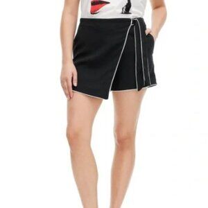 Furstenberg for Target is a versatile piece with timeless style. Made from soft, lightweight recycled polyester fabric in a solid black color with contrast piping, this skort boasts a functional tie and black zipper closure for easy wear. The mini length and built-in