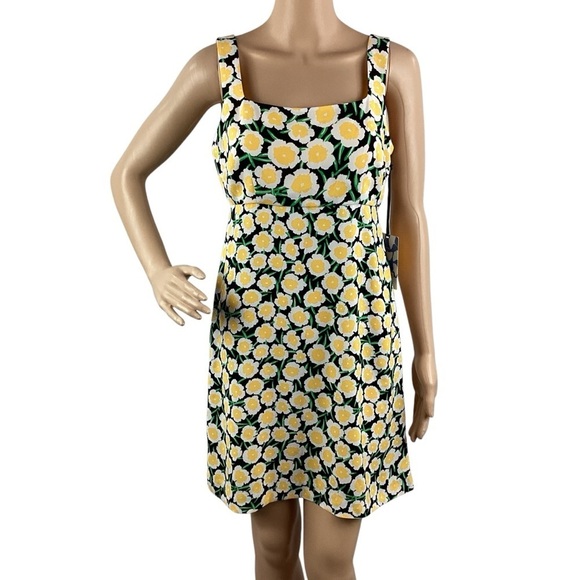DVF for Target Yellow Floral Empire Waist Mini Dress Size 4 Scoop Back