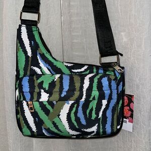 DVF x Target Black Green White Disco Zebra Nylon Utility Crossbody Bag