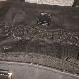 This is a black canvas with leather trim carry-on it’s not new but it’s in good condition just needs a good wipe down. Please check the pictures. Measures approximately 13 1/2 x 11 x 8. It’s good size. Divides in the middle