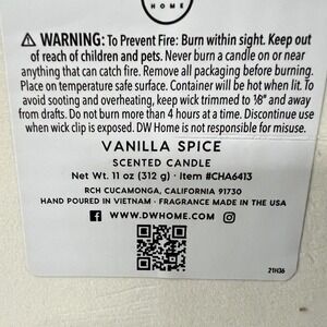 DW Home Fine Quality No. 04 Vanilla Spice Candle 11 oz in Gift Box Holiday Scent.