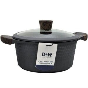 D&W Premium Cookware 9.5in Stock Pot Casserole with Lid Non-stick 4.5QT Black