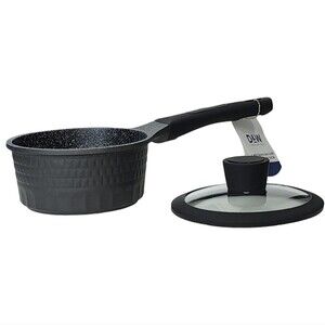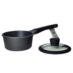 D&W Deane And White Premium Cookware 6.3inc Saucepan Casserole Non-stick with Clear Glass Lid Black Speckled Aluminum 1.4 QT