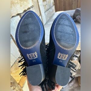 DW boots leather suede fringe black western ankle Hardy booties Sz-8.5M. E