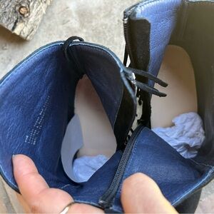 Black upper & lining leather booties w/rubber sole & inner/zipper. Cute fun/fringe boots for dancing in. Pre owned in excellent like new condition. Dark black like last pic.