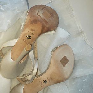 DWAY HEELED SANDAL Gold-Tone Metallic Thread Embroidered Satin
