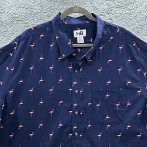 DXL HB 2XLT Short Sleeve Button Up Pink Flamingo Shirt Casual Beach Pool EUC
