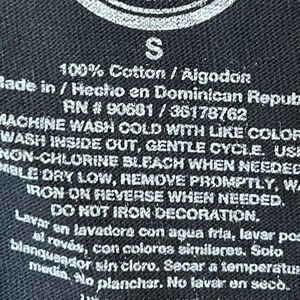 Label details: RN 90631; printed care info inside neck