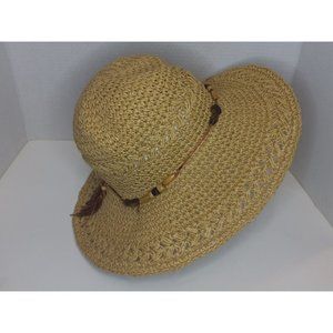 Boho. Tassel and beading accent. One Size. 4.25" wide brim. Paper material.