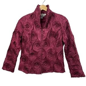 D&Y Petite Cranberry Swirl Stretch Jacket Rosette Blazer, PM