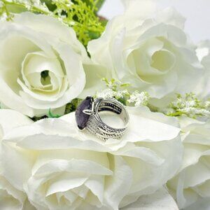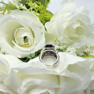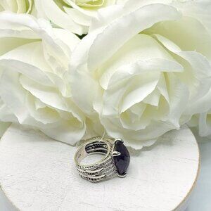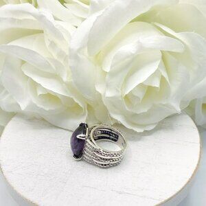 David Yurman Ster. Silver 16x12mm Tides Amethyst & Diamond Ring Size 6